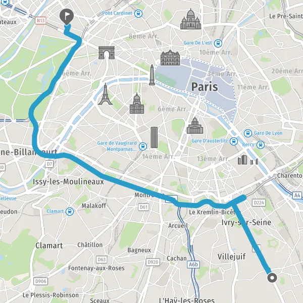 Tourner légèrement à droite sur Boulevard Exelmans et continuer sur 1,4 kilomètre