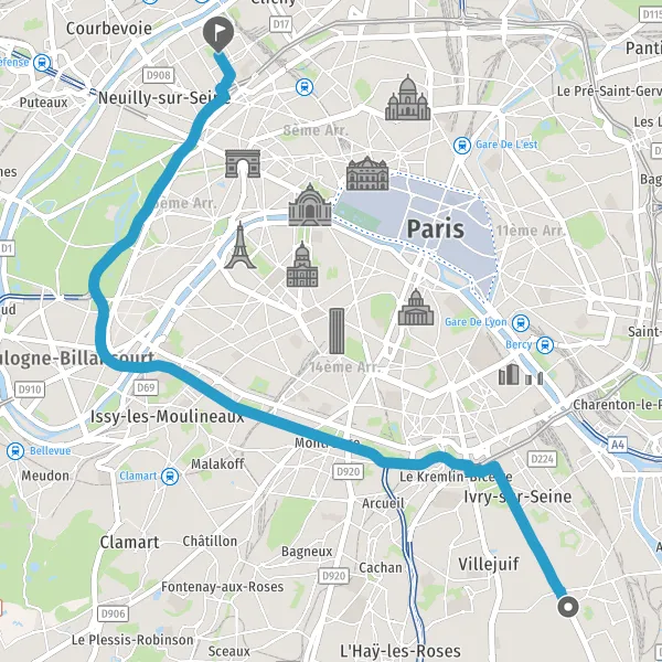 Prendre à droite et rejoindre Boulevard Périphérique. Continuer sur 3,4 kilomètres
