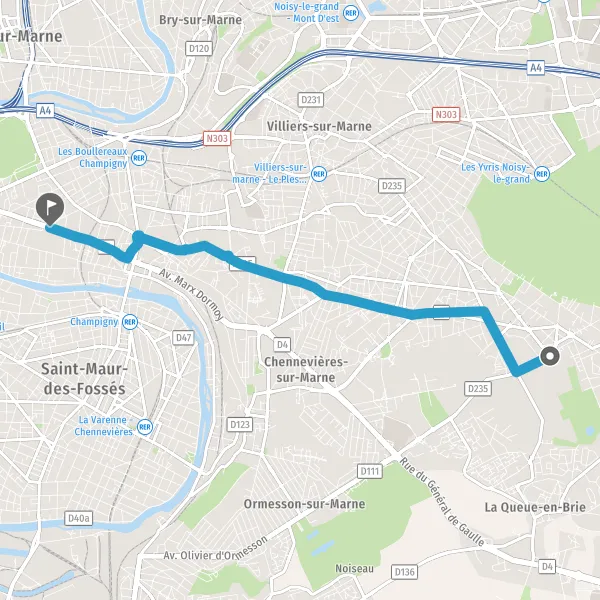 | Distance en voiture | 7,3 km à 7,6 km |