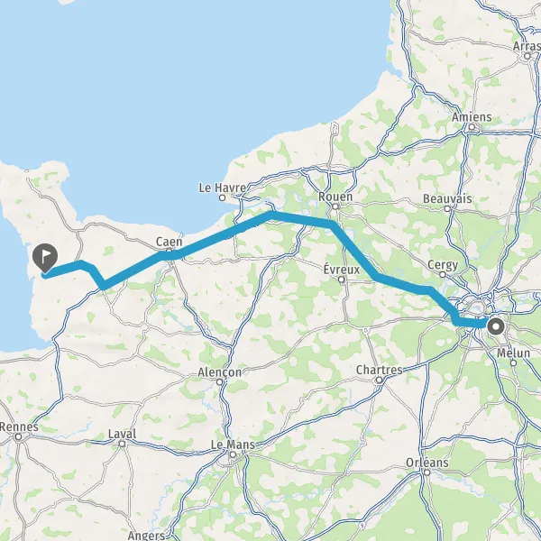 Prendre à droite et rejoindre A84 E401. Continuer sur 45 kilomètres