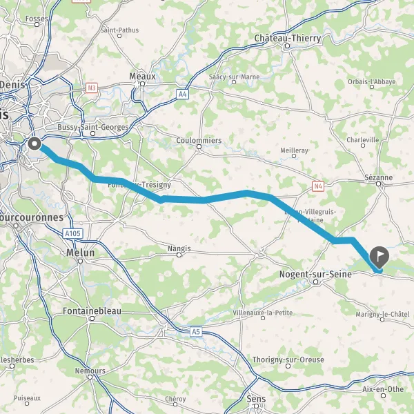 Au rond-point, prendre la 2ème sortie sur D1004 (Route de Paris) et continuer sur 43 kilomètres