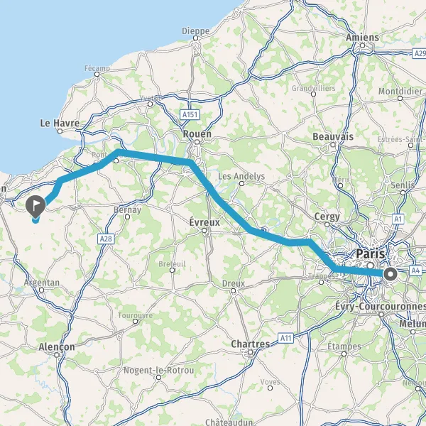 Prendre à droite et rejoindre A13. Continuer sur 12 kilomètres