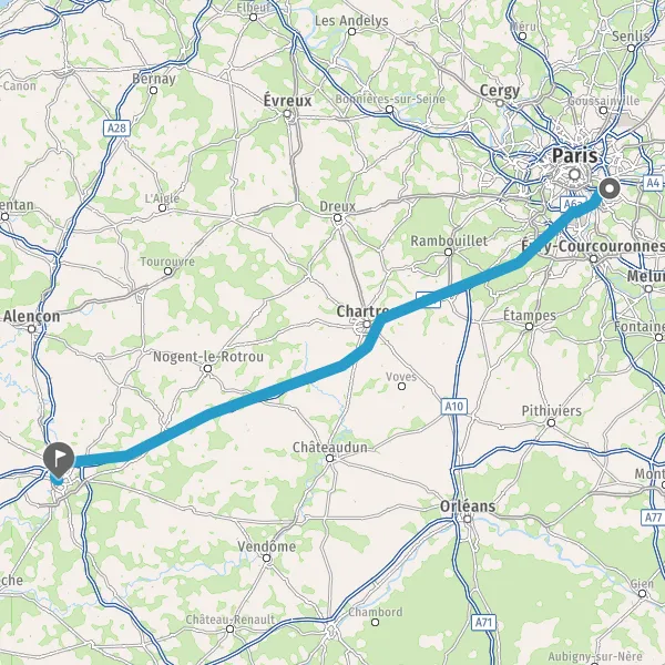 Prendre à droite et rejoindre A10. Continuer sur 34 kilomètres