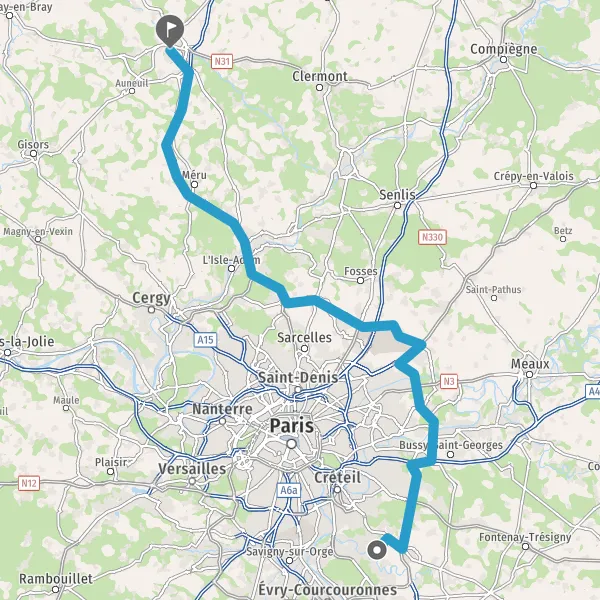 Prendre à droite et rejoindre N104 (La Francilienne). Continuer sur 8,8 kilomètres