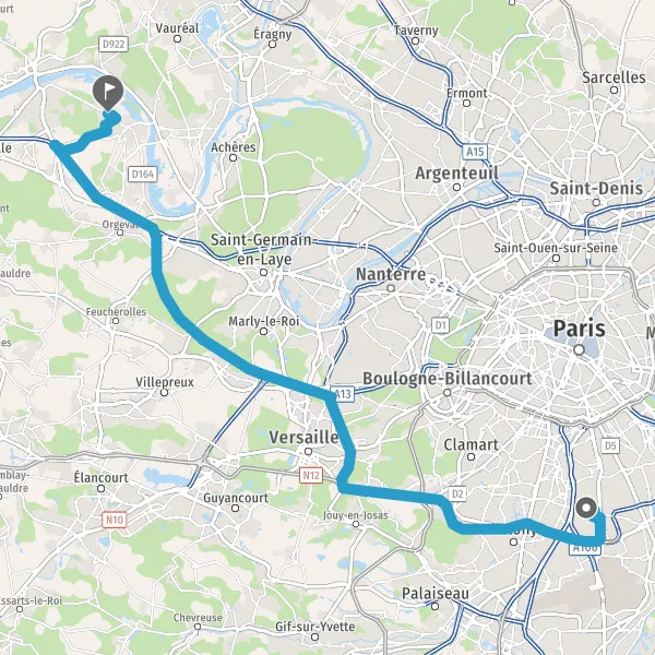 Prendre à droite et rejoindre A86. Continuer sur 6,6 kilomètres
