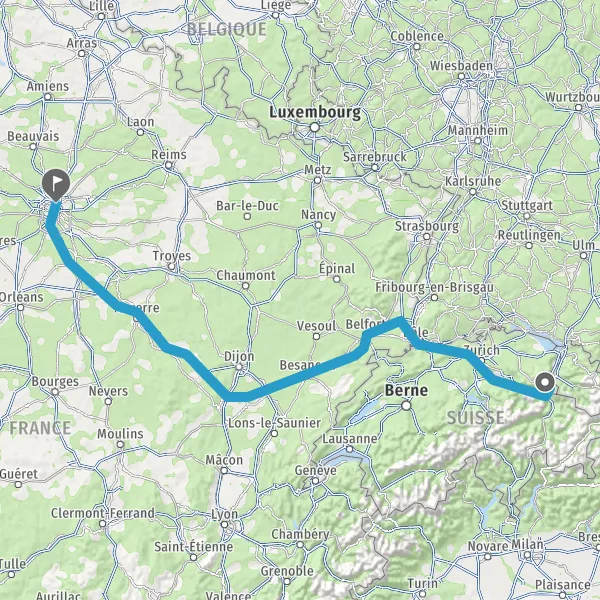 Prendre à gauche et rejoindre A36 E54 E60. Continuer sur 228 kilomètres