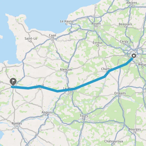 Prendre à droite et rejoindre A11 E50. Continuer sur 147 kilomètres