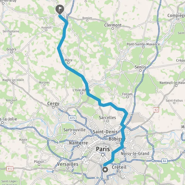 Prendre à droite et rejoindre N104 (La Francilienne). Continuer sur 8,8 kilomètres