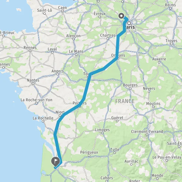 Continuer E5 (L'Aquitaine) sur 531 kilomètres