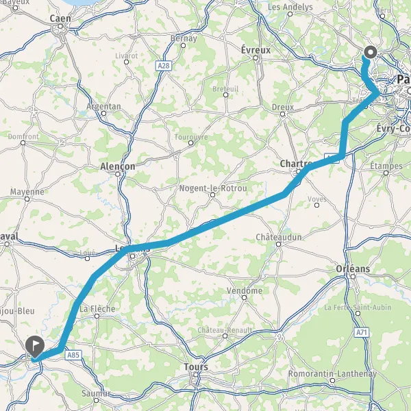 Prendre à droite et rejoindre A11 E50. Continuer sur 142 kilomètres