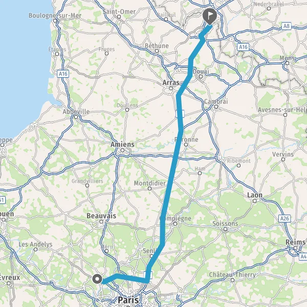Prendre à droite et rejoindre A1. Continuer sur 2,1 kilomètres