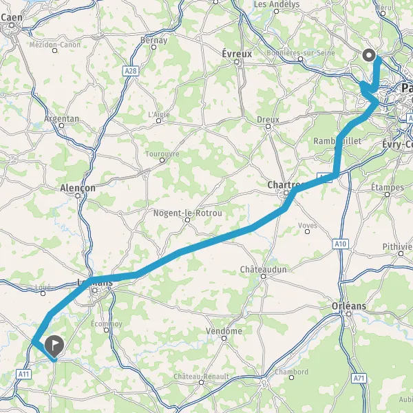 Prendre à droite et rejoindre A11 E50. Continuer sur 147 kilomètres