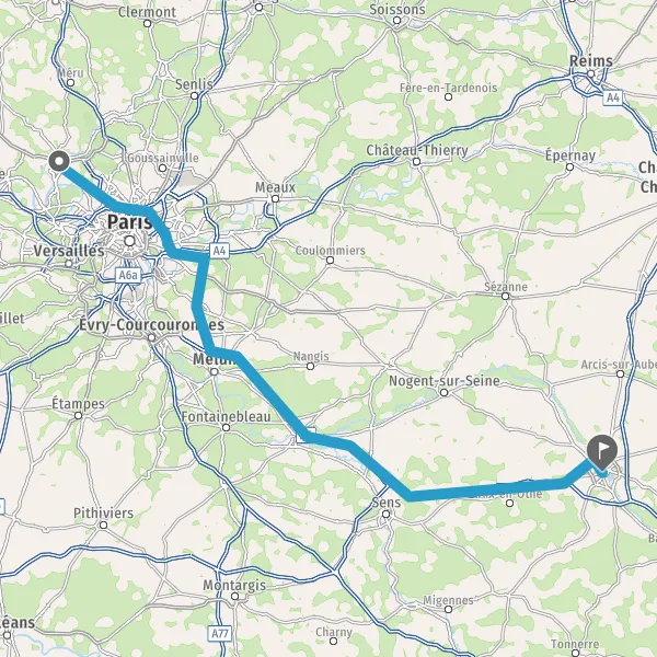 Prendre à droite et rejoindre A5. Continuer sur 64 kilomètres