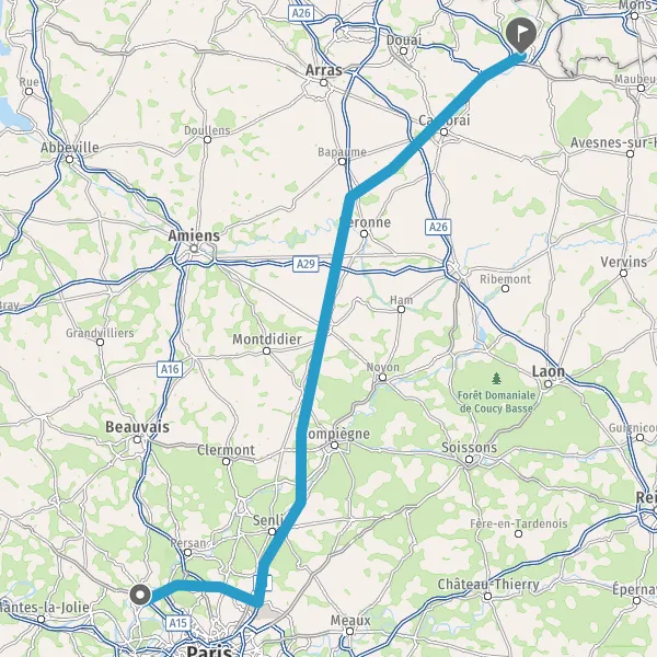 Prendre à droite et rejoindre A1 A1 E19 E15. Continuer sur 116 kilomètres