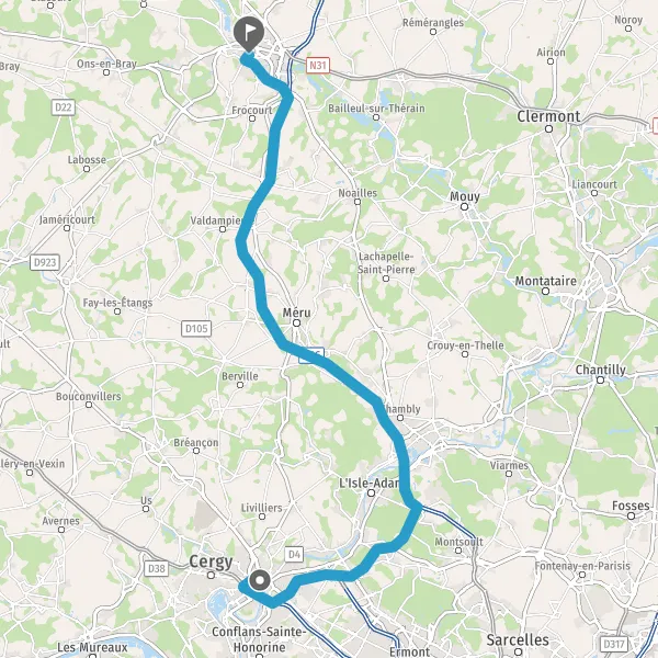 Prendre à droite et rejoindre D14 (Chaussée Jules César). Continuer sur 100 mètres