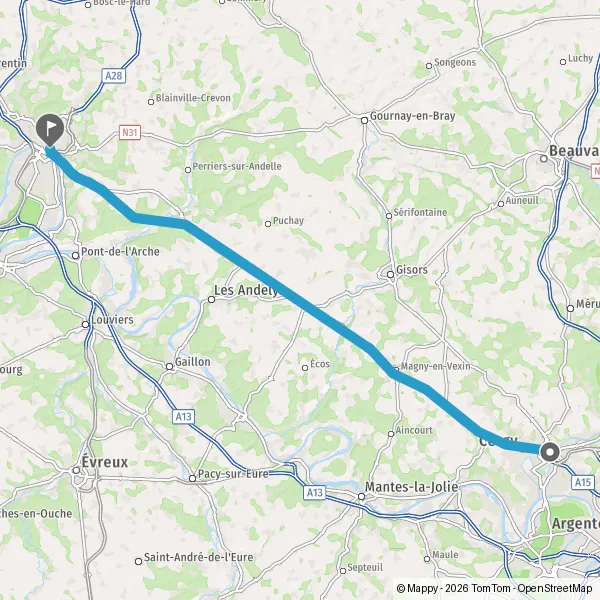 Au rond-point, prendre la 1ère sortie sur D138 (Rue des Andelys) et continuer sur 2,4 kilomètres