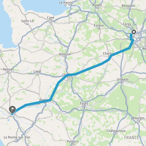 Prendre à droite et rejoindre A11 E50. Continuer sur 147 kilomètres