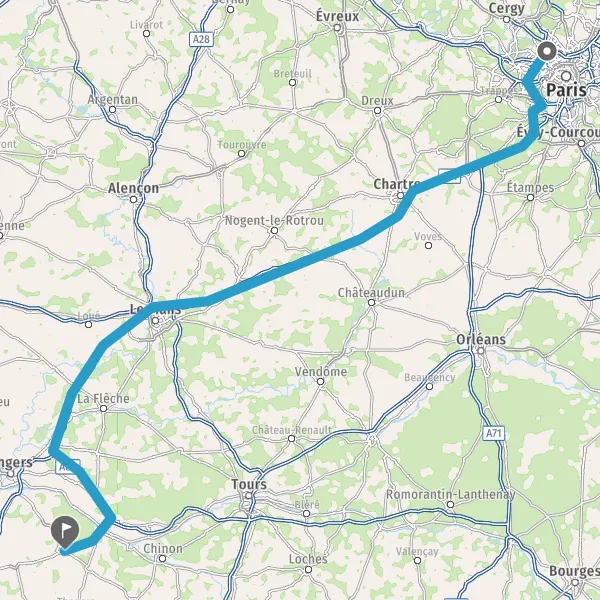 Prendre à droite et rejoindre A11 E50. Continuer sur 142 kilomètres