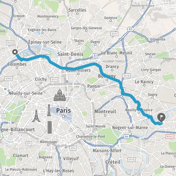 Prendre à droite et rejoindre D909 (Avenue Gabriel Péri). Continuer sur 1,3 kilomètre