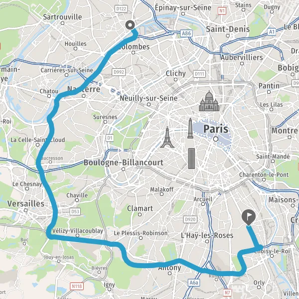 Prendre à droite et rejoindre A86. Continuer sur 4,2 kilomètres