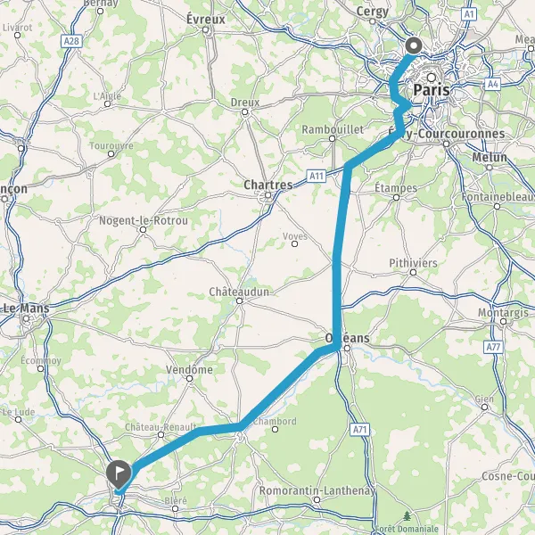 | Distance en voiture | 232 km à 260 km |
