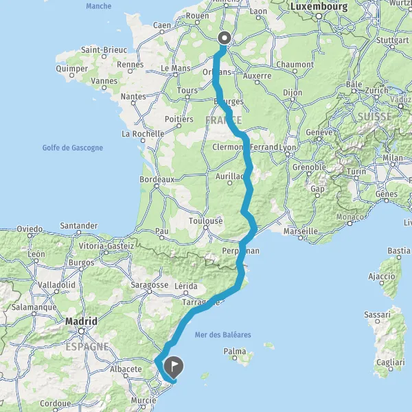 Prendre à droite et rejoindre A9. Continuer sur 120 kilomètres