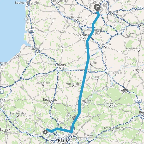 Continuer E19 (Autoroute du Nord) sur 124 kilomètres