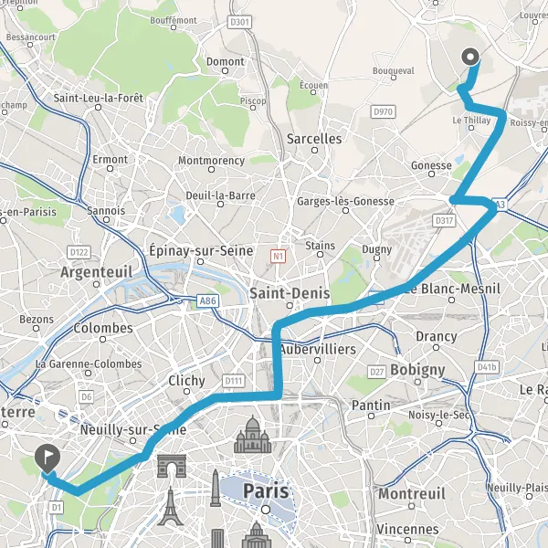 A86AUBERVILLIERSNANTERRELA DÉFENSECERGY-PONTOISEST DENIS-LA PLAINESTADE DE FRANCE