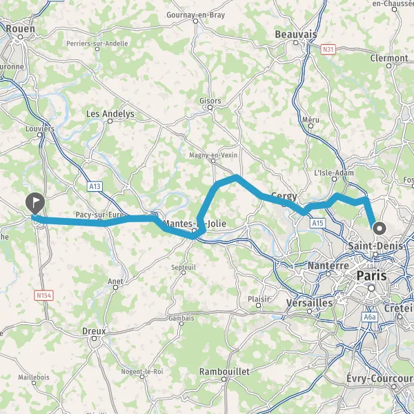 Sortir et rejoindre N13 (Route Nationale 13). Continuer sur 500 mètres