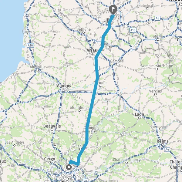 Prendre à droite et rejoindre A1 A1 E19 E15. Continuer sur 116 kilomètres