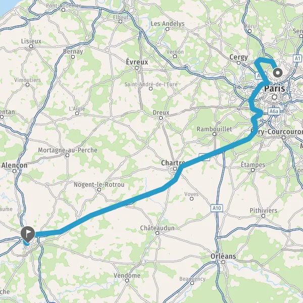 Prendre à droite et rejoindre A10. Continuer sur 34 kilomètres