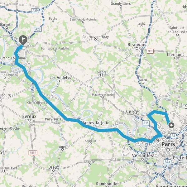 Prendre à gauche et rejoindre A13 E5. Continuer sur 69 kilomètres