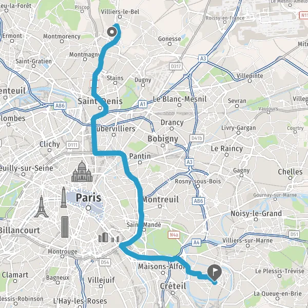 Prendre à droite et rejoindre A86. Continuer sur 3,3 kilomètres