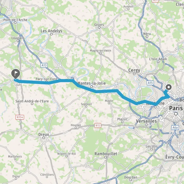 Sortir et rejoindre N13 (Route Nationale 13). Continuer sur 500 mètres