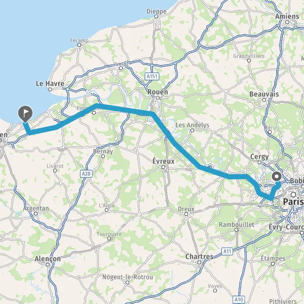 Continuer E46 (L'Autoroute de Normandie) sur 22 kilomètres