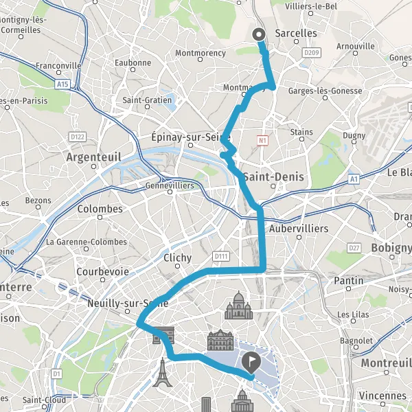 Prendre à droite et rejoindre D1 (Quai de Saint-Ouen). Continuer sur 1,3 kilomètre