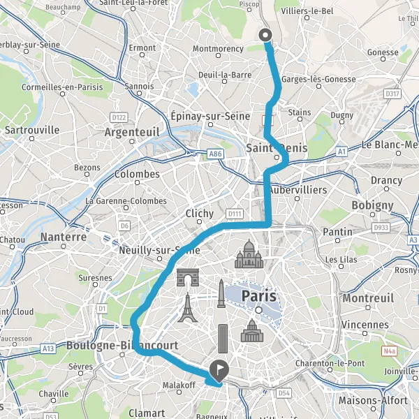 Prendre à droite et rejoindre D1 (Quai de Saint-Ouen). Continuer sur 1,3 kilomètre