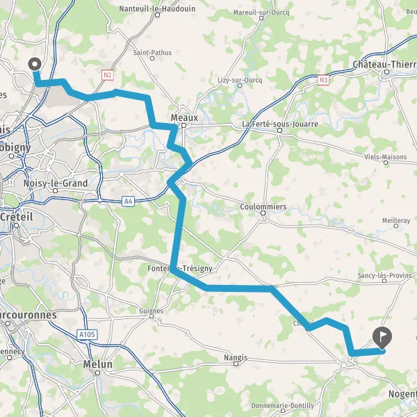 Prendre à droite et rejoindre D1004 (La Francilienne). Continuer sur 39 kilomètres
