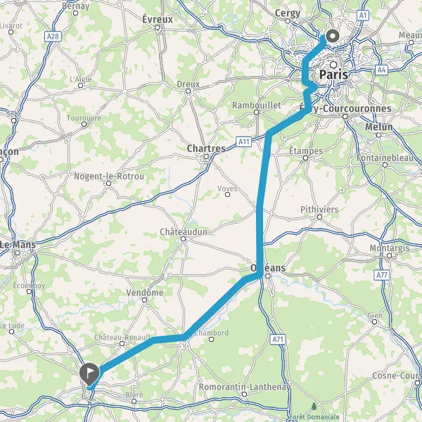 Prendre à droite et rejoindre A10. Continuer sur 34 kilomètres