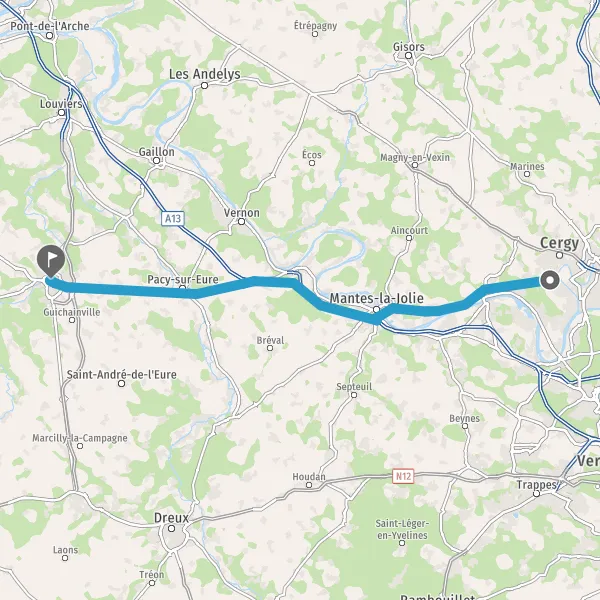 Continuer D113 (Route Nationale 13) sur 20 kilomètres