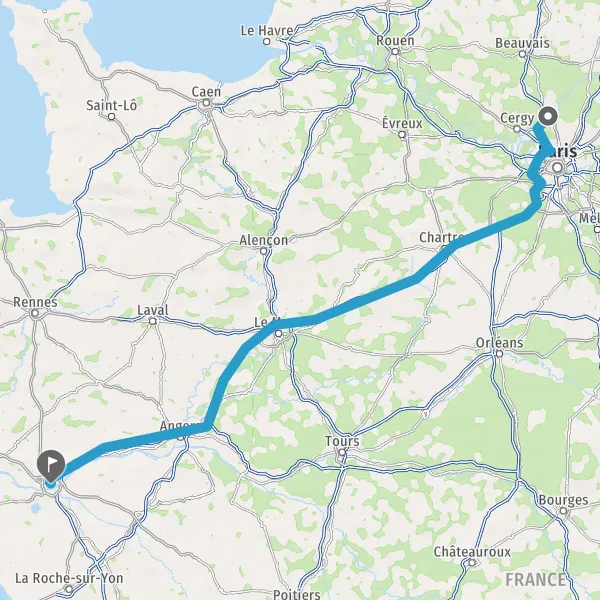Prendre à droite et rejoindre A11 E50. Continuer sur 147 kilomètres