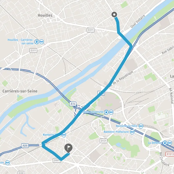 | Distance en voiture | 5,3 km à 6,2 km |