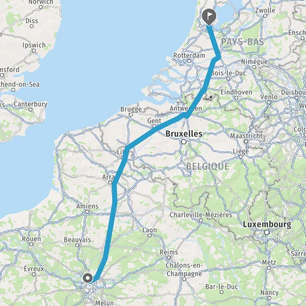 Continuer E19 (Autoroute du Nord) sur 124 kilomètres