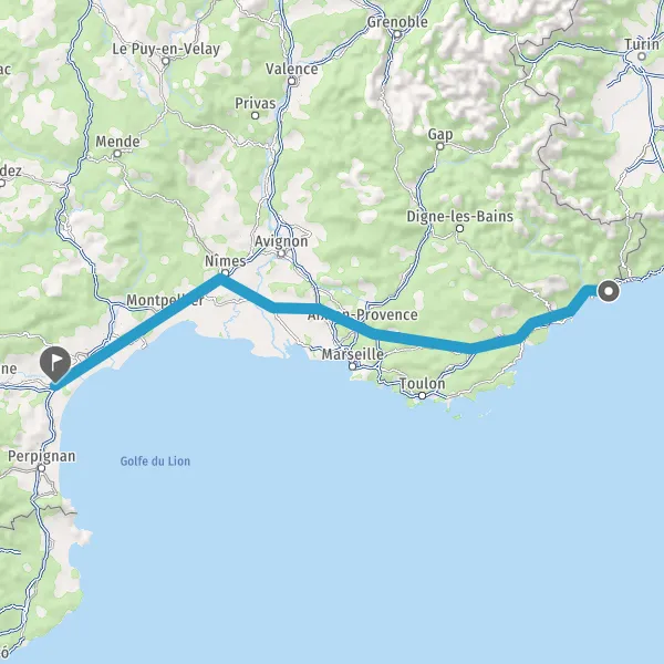 Continuer E15 (La Languedocienne) sur 104 kilomètres
