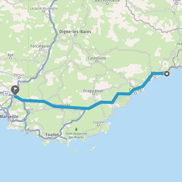 Avec le mode voiture, vous pouvez configurer vos options (type de véhicule, autoroute ou non, péage ou non, distance la plus courte), tout en ayant accès aux infos de circulation grâce à notre service d'info-trafic en temps réel. Ainsi faites des économies sur le coût ou la durée de votre voyage, en trouvant le trajet Monaco Aix-en-Provence adapté à vos besoins.