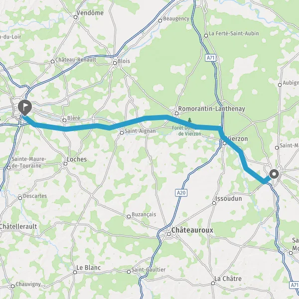Prendre à droite et rejoindre A71. Continuer sur 37 kilomètres