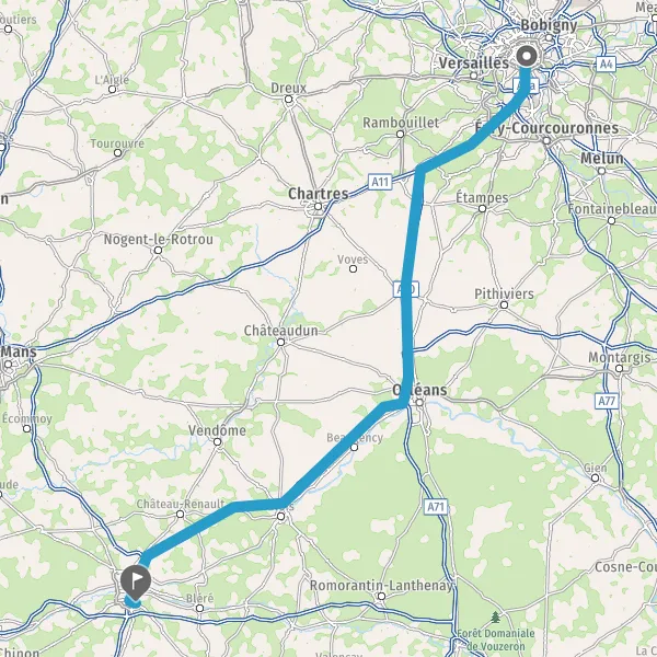 Trajet de Paris (75000) à 36 Rue Augustin Fresnel, Chambray-lès-Tours (37170) en voiture