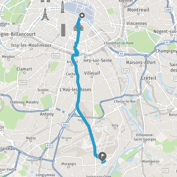 Itinéraire en voiture de Paris 75001-75116 à Athis-Mons 91200