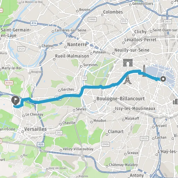 Au rond-point, prendre la 3ème sortie sur Rue de Versailles et continuer sur 450 mètres