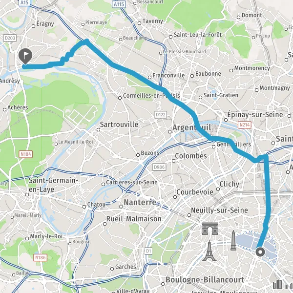 Prendre à gauche et rejoindre N184 (La Francilienne). Continuer sur 4,4 kilomètres